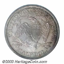 <table><tr><td><TABLE cellSpacing=0 cellPadding=0 width="100%" bgColor=#000000 border=0><TBODY> <TR><TD width="100%"><TABLE cellSpacing=1 cellPadding=3 width="100%" border=0><TBODY><TR><TD width="100%" bgColor=#79735c><FONT face=arial color=#ffffff size=3><B>Description</B> </FONT></TD></TR><TR><TD width="100%" bgColor=#ffffff><FONT face=arial size=2><B>1869 50C PR65 PCGS.</B></I> One of just a few dozen Gem or better survivors from a proof mintage of 600 pieces. The deep, watery brilliance of this specimen is thwarted by milky olive-gray patina that produces a variety of iridescent colors when tilted just so. Population: 13 in 65, 5 finer (4/03). </FONT></TD></TR></TBODY></TABLE></TD></TR></TBODY></TABLE><BR><A name=PricesRealized></A><TABLE cellSpacing=0 cellPadding=0 width="100%" bgColor=#000000 border=0><TBODY><TR><TD width="100%"><TABLE cellSpacing=1 cellPadding=3 width="100%" border=0><TBODY><TR><TD width="100%" bgColor=#79735c><A name=PR><FONT face=arial color=#ffffff size=3><B>Previous Prices from Heritage Auctions</B> </FONT></A></TD></TR><TR><TD bgColor=#f6f6ed><TABLE cellSpacing=0 cellPadding=0 width="100%" border=1><TBODY><TR><TD align=middle width="33%"><B>Date</B></TD><TD align=middle width="33%"><B>Service</B></TD><TD align=middle width="33%"><B>Price</B></TD></TR><TR bgColor=whitesmoke><TD width="33%"><B>05/31/2003</B></TD><TD width="33%">NGC</TD><TD width="33%">$4,370.00</TD></TR><TR bgColor=whitesmoke><TD width="33%"><B>05/31/2001</B></TD><TD width="33%">PCGS</TD><TD width="33%">$3,105.00</TD></TR><TR bgColor=whitesmoke><TD width="33%"><B>05/05/2000</B></TD><TD width="33%">NGC</TD><TD width="33%">$3,335.00</TD></TR><TR bgColor=whitesmoke><TD width="33%"><B>03/21/2002</B></TD><TD width="33%">PCGS</TD><TD width="33%">$3,450.00</TD></TR></TBODY></TABLE></TD></TR><TR><TD bgColor=#ffffff><FONT face=arial size=1 ?>PLEASE NOTE: All prices realized reflect the final hammer price PLUS the buyer's premium in auctions that charge a buyer's premium. Each item has a notation at the top of the listing indicating whether that lot included a buyer's premium. Example: A item that sells with a final hammer price of $100 and a 20% buyer's premium will display with a price realized of $120. All information listed is intended to be as accurate as possible, but errors are possible. Please use this guide carefully and inform us of any inaccuracies. </FONT></TD></TR></TBODY></TABLE></TD></TR></TBODY></TABLE><BR><TABLE cellSpacing=0 cellPadding=0 width="100%" bgColor=#000000 border=0><TBODY><TR><TD width="100%"><TABLE cellSpacing=1 cellPadding=3 width="100%" border=0><TBODY><TR><TD width="100%" bgColor=#79735c colSpan=6><FONT face=arial color=#ffffff size=3><B>Price Guide*</B> </FONT></TD></TR><TR bgColor=#f6f6ed><TD align=middle><B>Grade</B> </TD><TD align=middle><B>Coin World<BR>(Trends)</B> </TD><TD align=middle><B>Numismedia<BR>Retail</B> </TD><TD align=middle><B>Numismedia<BR>Wholesale</B> </TD><TD align=middle><B>Coin<BR>Universe</B> </TD><TD align=middle><B>Heritage<BR>Value Index</B> </TD></TR><TR bgColor=#ffffff><TD align=middle>64</TD><TD align=right>---</TD><TD align=right>---</TD><TD align=right>$1,175.00</TD><TD align=right>$1,450.00</TD><TD align=right>$921.67</TD></TR><TR style="FONT-WEIGHT: bold" bgColor=#cccfdd><TD align=middle>65</TD><TD align=right>---</TD><TD align=right>---</TD><TD align=right>$2,925.00</TD><TD align=right>$3,800.00</TD><TD align=right>$2,682.67</TD></TR><TR bgColor=#ffffff><TD align=middle>66</TD><TD align=right>---</TD><TD align=right>---</TD><TD align=right>$5,000.00</TD><TD align=right>$6,000.00</TD><TD align=right>$4,250.00</TD></TR><TR bgColor=#ffffff><TD colSpan=6><FONT size=1>*All information listed is intended to be as accurate as possible, but errors are possible. No item may be returned or refused based on this information which is provided as a service to our customers. You should contact each pricing source directly to determine the accuracy of this information. </FONT></TD></TR></TBODY></TABLE></TD></TR></TBODY></TABLE><BR><TABLE cellSpacing=0 cellPadding=0 width="100%" bgColor=#000000 border=0><TBODY><TR><TD width="100%"><TABLE cellSpacing=1 cellPadding=3 width="100%" border=0><TBODY><TR><TD width="100%" bgColor=#79735c><FONT face=arial color=#ffffff size=3><B>Population Guide</B> </FONT></TD></TR><TR bgColor=#ffffff><TD align=middle><!-- Begin Output of Population Grid--><TABLE cellSpacing=0 cellPadding=0 width="100%" border=0><TBODY><TR><TD vAlign=center><TABLE cellSpacing=0 width="100%" border=1 cellsadding="3"><TBODY><TR><TD vAlign=center><TABLE cellSpacing=0 cellPadding=3 width="100%" border=1><TBODY><TR><TD vAlign=center align=middle bgColor=#f0f1e8 colSpan=2 <CENTER><FONT face=Arial size=2><B>PCGS Pop </B></FONT><CENTER></CENTER></TD><TD vAlign=center align=middle bgColor=#f0f1e8 colSpan=2><CENTER><FONT face=Arial size=2><B>NGC Pop</B></CENTER></FONT></TD></TR><TR><TD vAlign=center><FONT face=Arial size=2>(65)</FONT> </TD><TD vAlign=center align=right><FONT face=Arial size=2>14</FONT> </TD><TD vAlign=center><FONT face=Arial size=2>(65)</FONT> </TD><TD vAlign=center align=right><FONT face=Arial size=2>15</FONT> </TD></TR><TR><TD vAlign=center><FONT face=Arial size=2>(>65)</FONT> </TD><TD vAlign=center align=right><FONT face=Arial size=2>5</FONT> </TD><TD vAlign=center><FONT face=Arial size=2>(>65)</FONT> </TD><TD vAlign=center align=right><FONT face=Arial size=2>16</FONT> </TD></TR></TBODY></TABLE></TD></TR></TBODY></TABLE></TD></TR></TBODY></TABLE><!-- End Output of Population Grid--></TD></TR></TBODY></TABLE></TD></TR></TBODY></TABLE><BR><TABLE cellSpacing=0 cellPadding=0 width="100%" bgColor=#000000 border=0><TBODY><TR> Important notice: Heritage usually auctions material at the rate of 200-250 lots per hour. On some occasions eBay Live bid software or the Internet may not be able to keep up with the pace of the auction. We recommend placing a realistic absentee bid now as insurance to avoid disappointment. Occasionally the auctionee