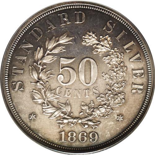 1869 50C Standard Silver Half Dollar, Judd-749, Polloc