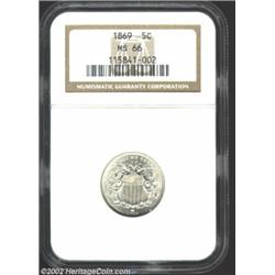 1869 5C MS66 NGC. A boldly struck and brilliant Gem that has impressive luster and pleasing preserva