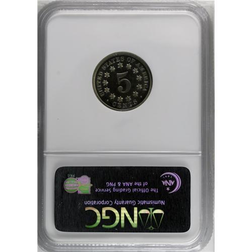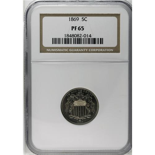 <B>1869<5C> PR65 NGC.</B></I> This Gem's fields are covered in subtle gold and periwinkle. Tiny flecks of carbon appear on the right obverse field.<BR><I>Ex: Arthur A. Grasso Collection (Stack's, 11/50), lot 121.</B></I><BR><I>From The Redfjord Collection.</B></I>