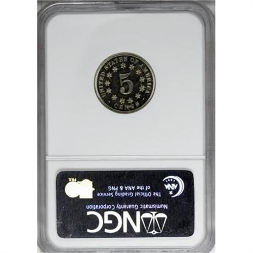 <B>1869 5C PR65 NGC.</B></I> Sharply struck, except for several stars on the reverse. The obverse is untoned and pleasingly preserved, though the reverse shows a few russet toning specks and a couple of tiny planchet flaws.<BR><BR><B>Coin Engraver:</B> James B. Longacre<BR><BR><b>Shipping:</b> Coins & Currency (<a target="_blank" href="http://www.heritageauctions.com/common/shipping.php">view shipping information</a>)