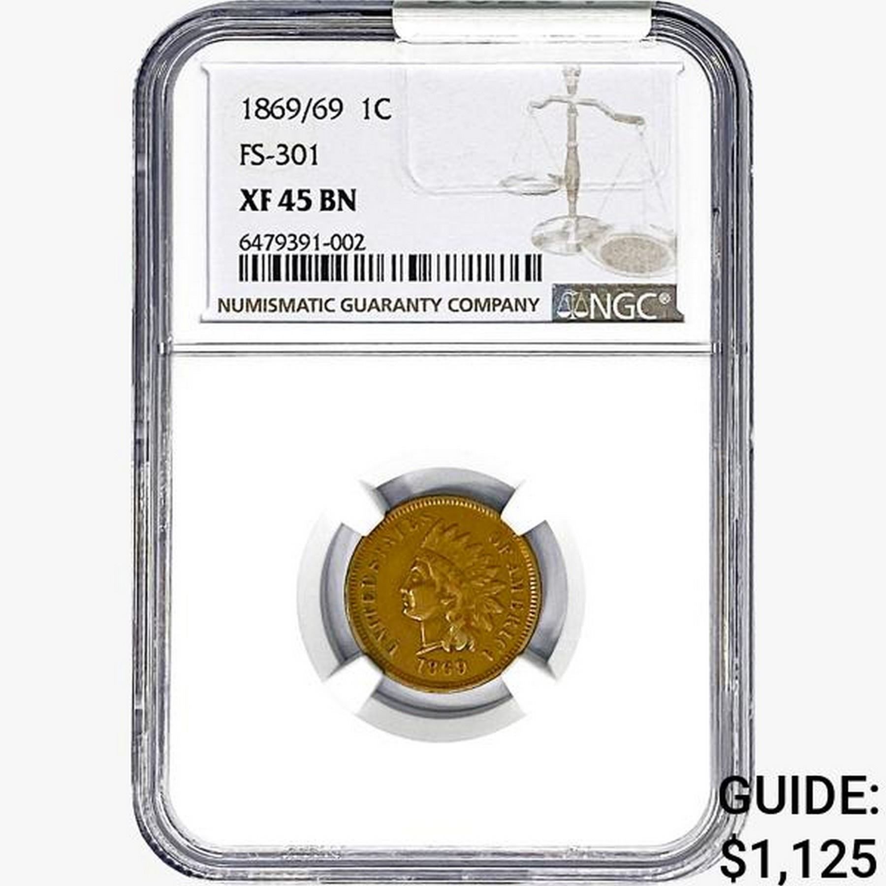 1869/69 Indian Head Cent NGC XF45 BN FS-301