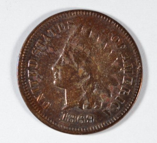 1869/9 INDIAN ONE CENT VF DETAILS, LIGHT SURFACE POROSITY, RARE COIN!