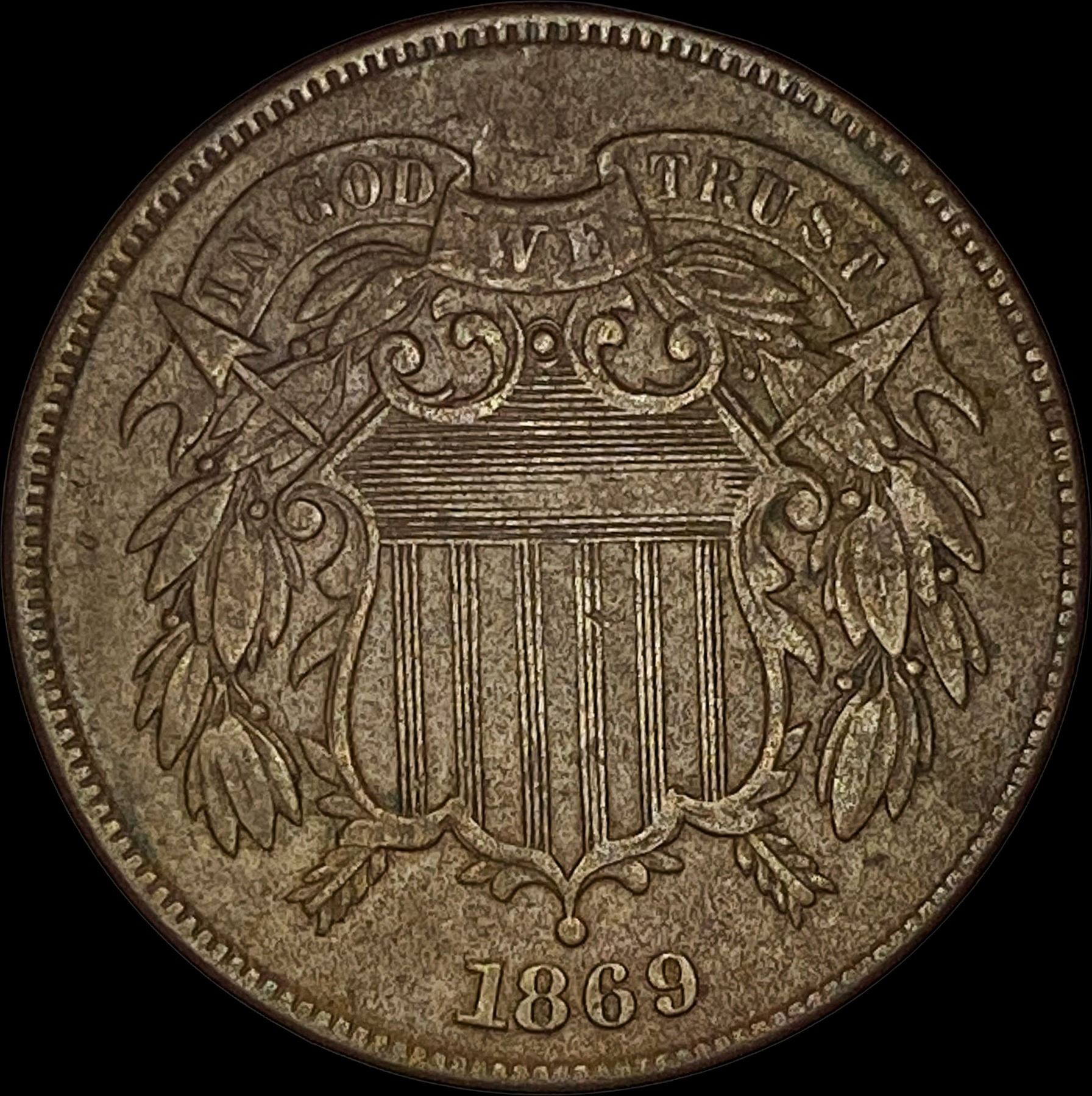 1869 Bronze Two-Cent Piece NEARLY UNCIRCULATED