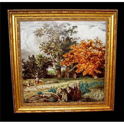 Rare Monumental Landscape Genre Oil Painting on Ceramic Tile Listed</em></td>