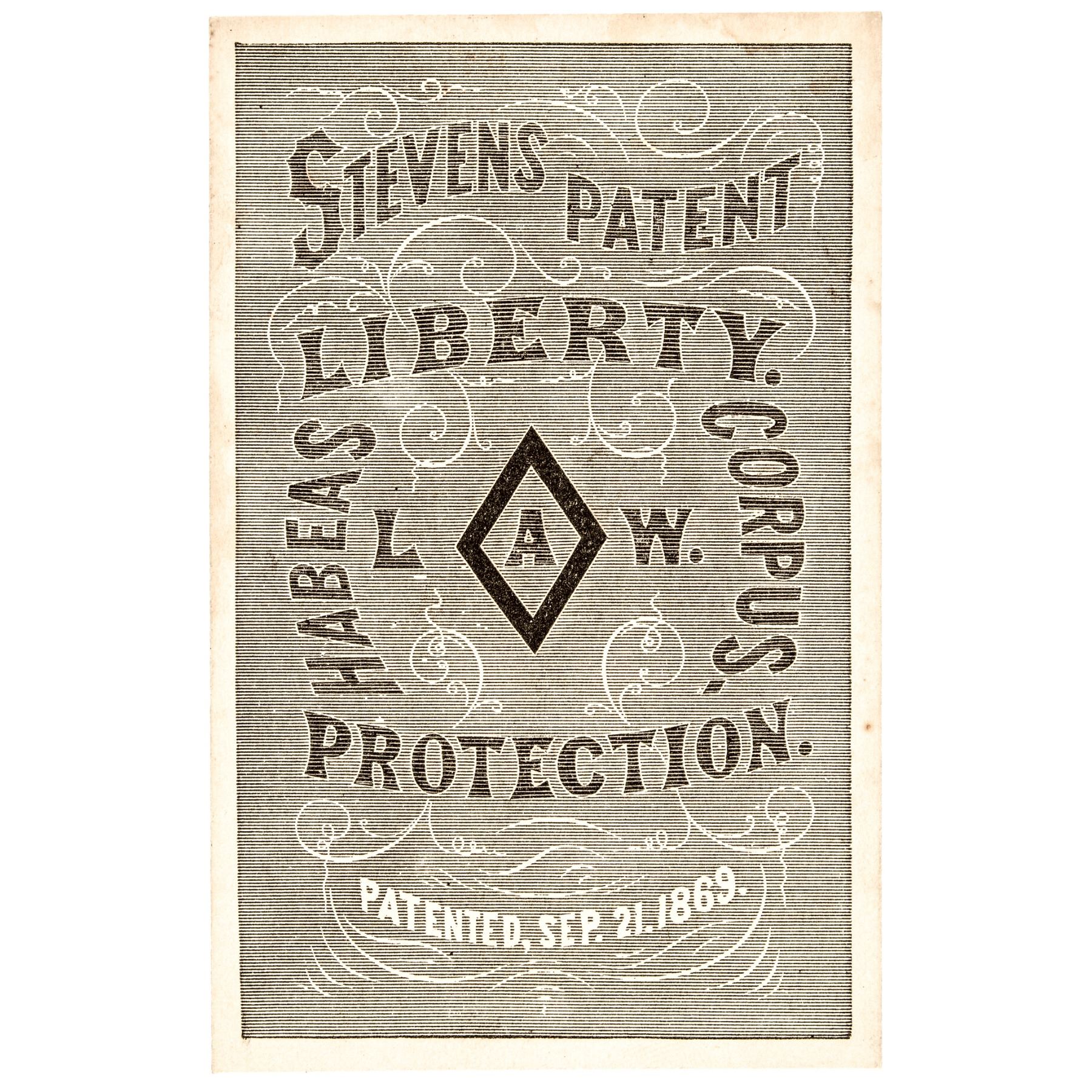 1869 Deck, STEVENS PATENT PLAYING CARDS Liberty. LAW. Protection. Habeas Corpus.