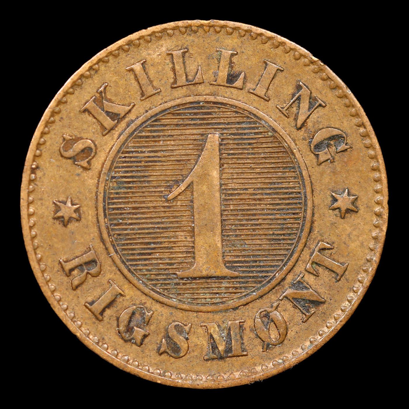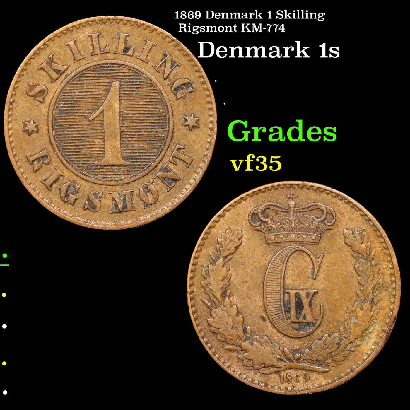 1869 Denmark 1 Skilling Rigsmont KM-774 Grades vf++.