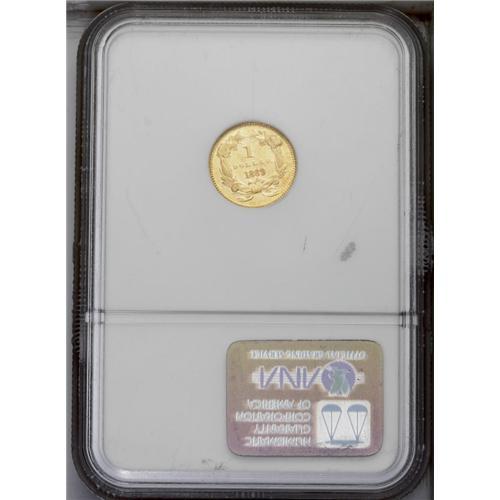 1869 G$1 AU58 NGC. Both sides have nearly complete, re