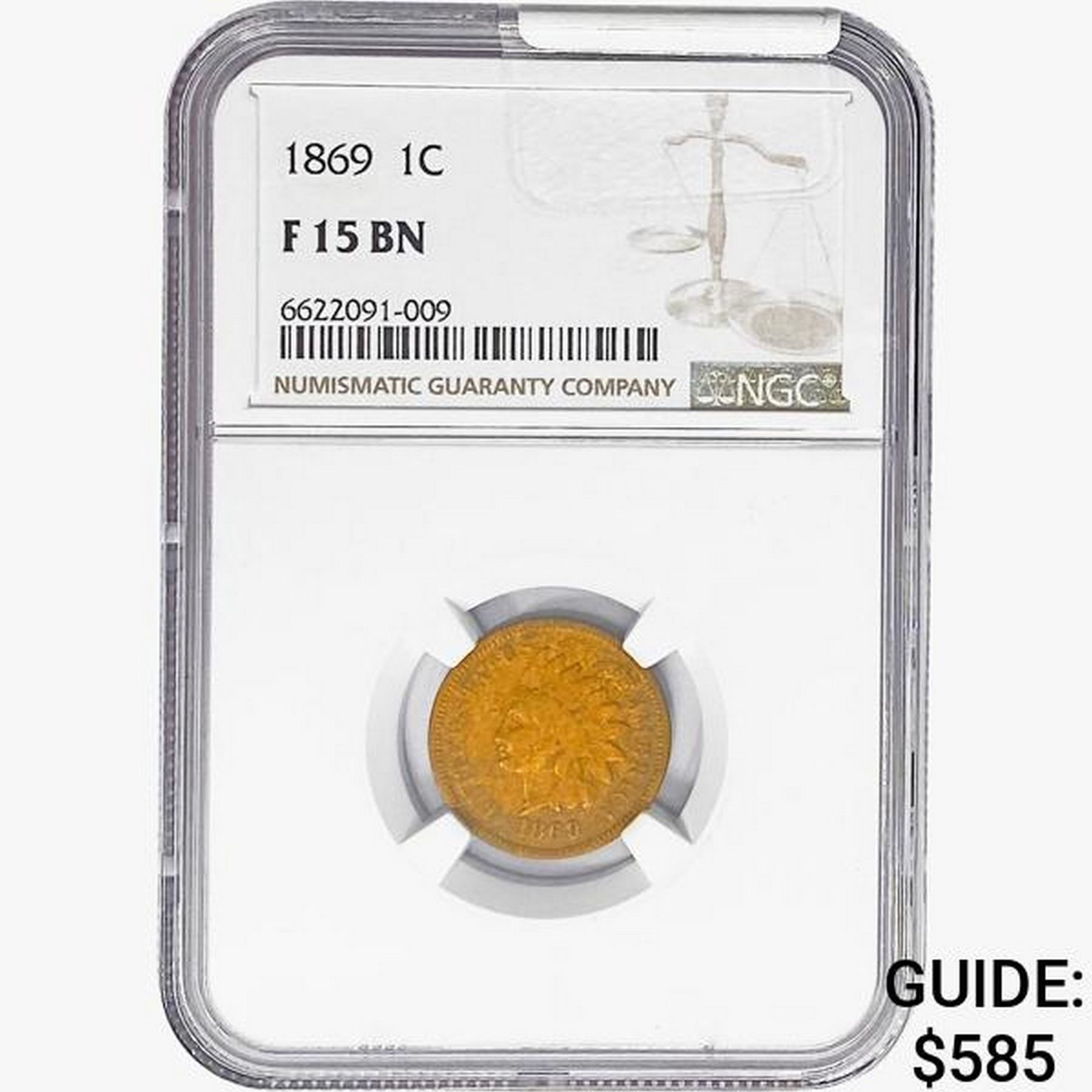 1869 Indian Head Cent NGC F15 BN