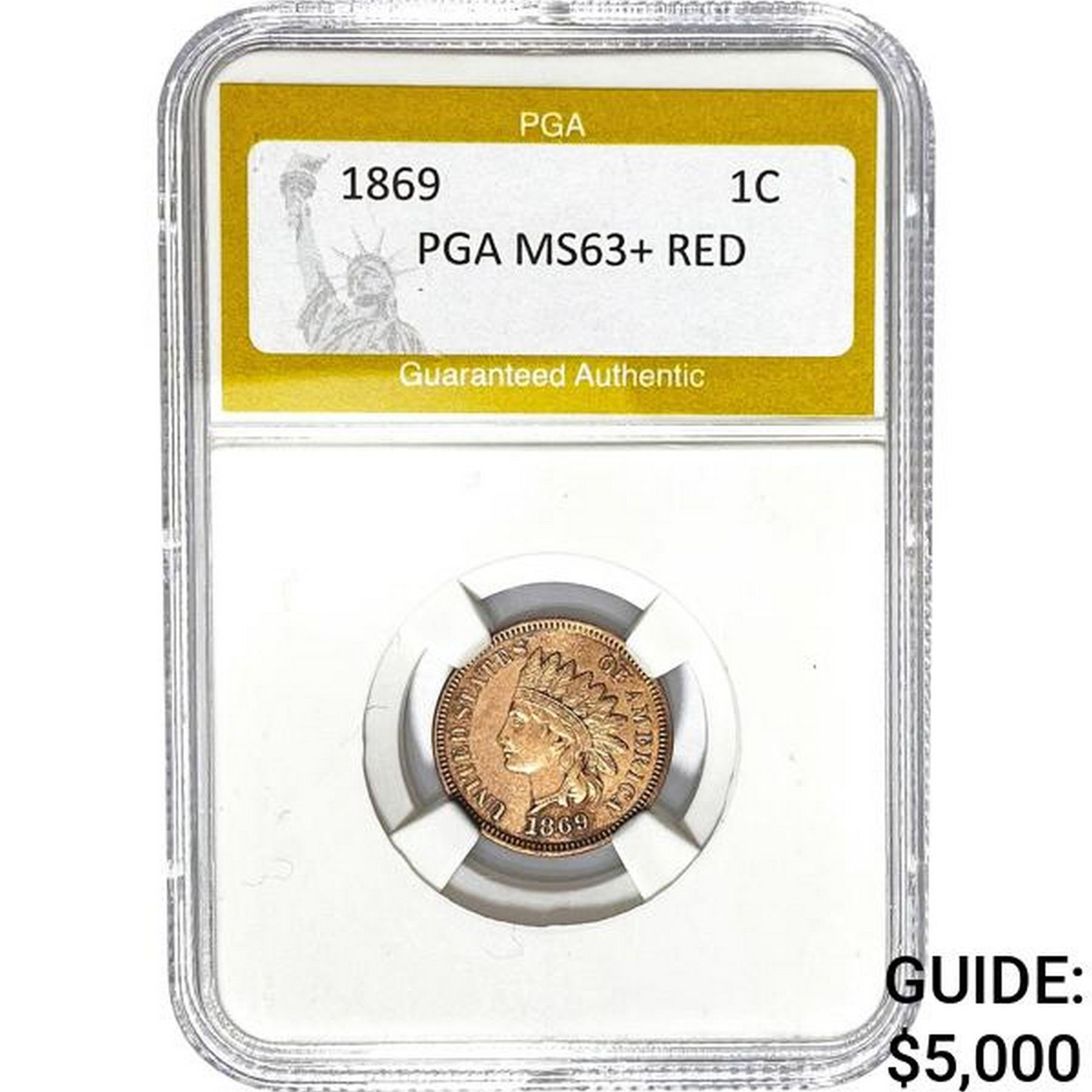 1869 Indian Head Cent PGA MS63+ RED