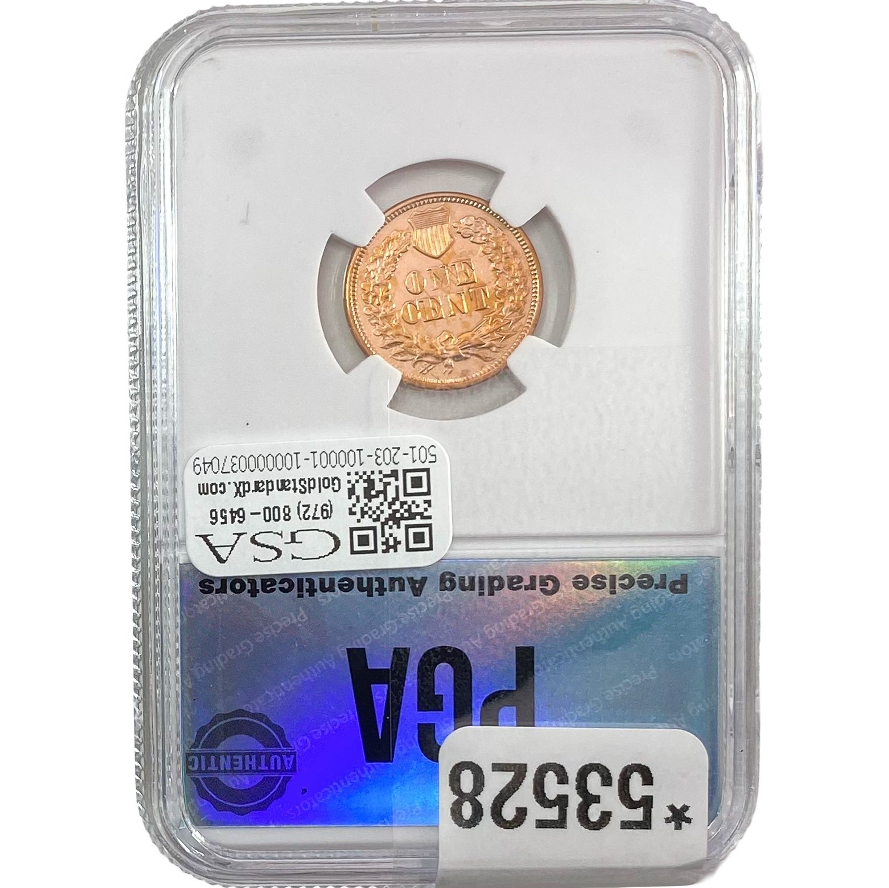 1869 Indian Head Cent PGA MS63 RED