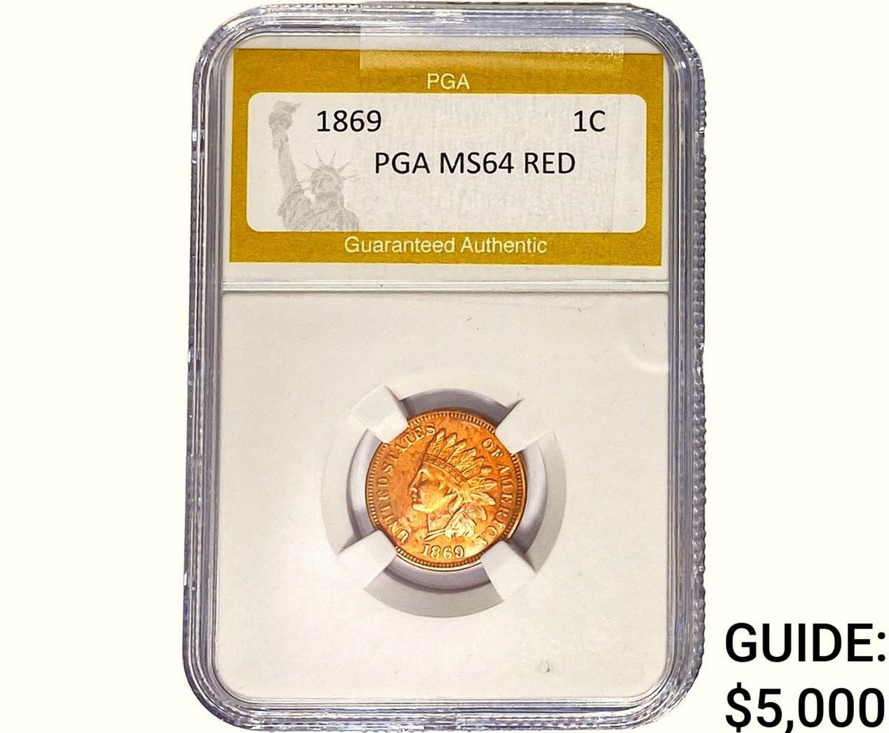 1869 Indian Head Cent PGA MS64 RED