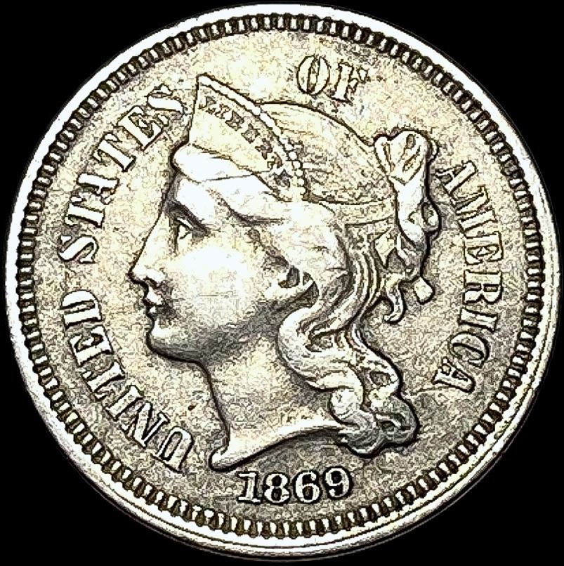 1869 Nickel Three-Cent Piece NEARLY UNCIRCULATED