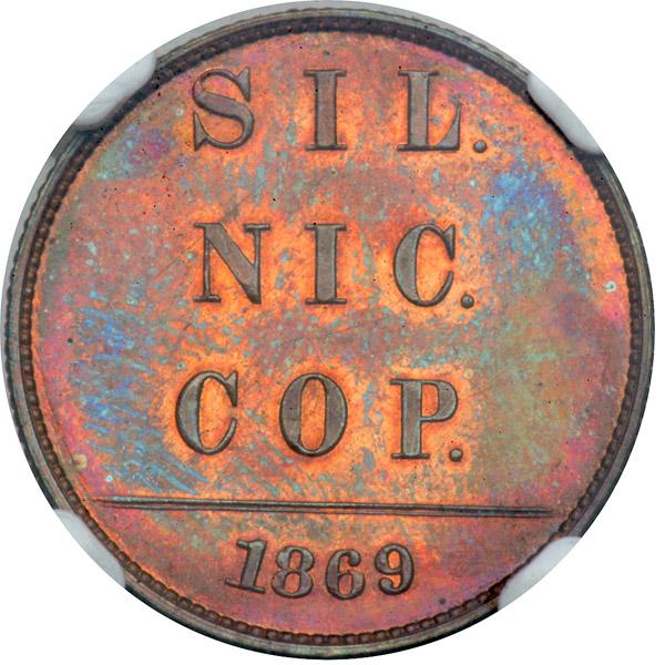 The American Civil War of 1861-65 (official name War of the Rebellion) caused monetary confusion throughout the Northern states and resulted in extensive experimentation with America's coinage. Long after the war's close, the experiments continued, including this 1869 Judd-717 Pattern Dime issue among the rarer Types.