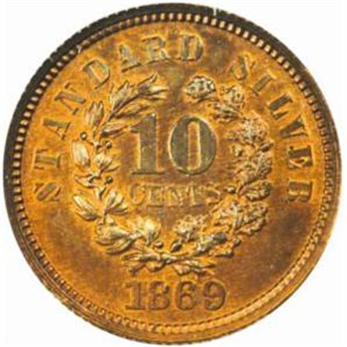 1869 Pattern Dime. Judd-698, Pollock-777. Rarity-7-. Proof-65 BN (NGC).