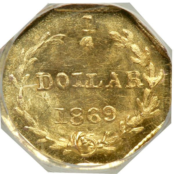 1869 Quarter Dollar Octagonal. Breen and Gillio-712. High Rarity 4. NGC MS65