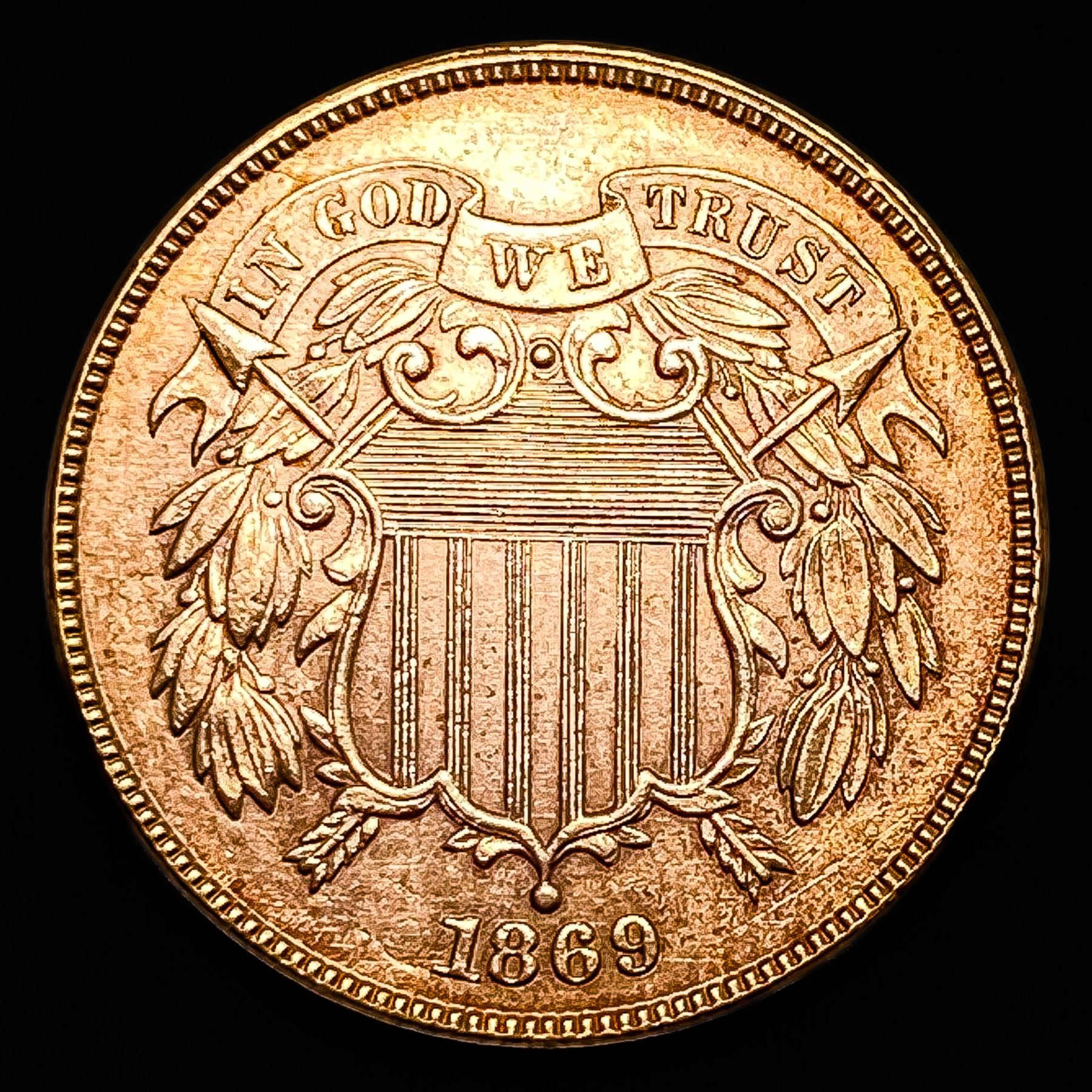1869 RED Two Cent Piece UNCIRCULATED