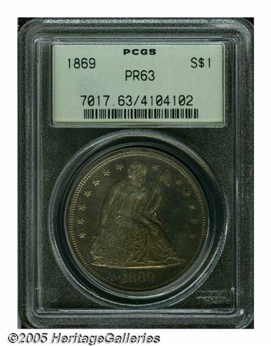 1869 S$1 PR63 PCGS. Typically sharply struck, wit