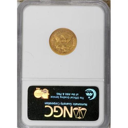 <B>1869-S $2 1/2 AU55 NGC.</B></I> The 1869-S quarter eagle's mintage greatly exceeded that of its P-mint counterpart, though the total amounted to just 29,500 pieces. Curiously, the S-mint issue has a greater value through all higher grades. This briefly circulated piece has ample remaining luster and rich orange-gold color. Well struck save for the centers, which have a degree of softness on the highpoints.<BR><BR><b>Shipping:</b> Coins & Currency (<a target="_blank" href="http://www.heritageauctions.com/common/shipping.php">view shipping information</a>)