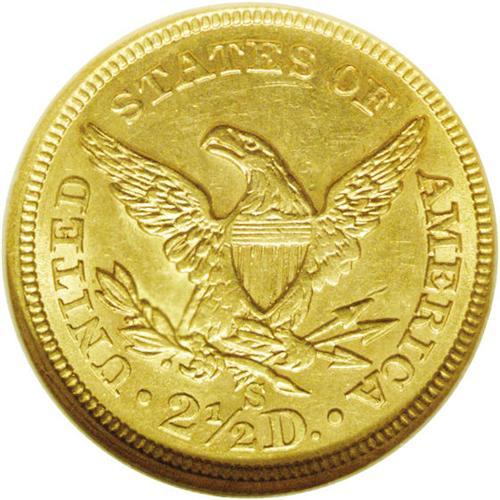 <B>1869-S<$2 1/2> AU58 NGC.</B></I> A typical example with considerable frosty luster and light yellow color. Although the mintage was quite a bit higher than similarly dated Philadelphia Mint coins, nearly all of these entered circulation, and few have survived in top grades. There were only a few collectors on the West coast to save examples, and East coast collectors didn't care about branch mint issues. Census: 44 in 58, 15 finer (3/06). <BR><BR><B>Important notice:</B> Heritage usually auctions material at the rate of 200-250 lots per hour. On some occasions eBay Live bid software or the Internet may not be able to keep up with the pace of the auction. We recommend placing a realistic absentee bid now as insurance to avoid disappointment. Occasionally the auctioneer may eliminate or reject an eBay Live bid, and the auctioneer may also reopen a lot after the close of the eBay live bidding (usually because we missed an audience bid), and may reject your bid even if it shows you as the winning bidder. By bidding via eBay Live, you agree that Heritage may award the lot to another bidder at its sole discretion under the circumstances described above or any other reasonable circumstances. Since eBay bids are not shown to us until we open the lot on the floor, we treat those bids just like floor bids. In most cases the floor responds before the eBay bid is presented to us, due to Internet lag time, so for consistency we have made it a policy that floor bids are always considered first over tie eBay live bids. Also please note that all Heritage lots purchased through eBay Live carry a 20% Buyer's Premium. Please make sure you read the Terms and Conditions before you bid. This lot is being auctioned in conjunction with a live floor auction by Heritage Galleries & Auctioneers. All final auction and invoice information will be supplied by Heritage Galleries & Auctioneers, and all other information should be considered preliminary. Lot:2420 <BR><BR><B>Winning Notification and Billing:</B> After the FINAL session in this auction is complete, Heritage will send e-mail and snail mail invoices. This process normally takes several days. All final auction and invoice information will be supplied by Heritage Galleries & Auctioneers, and all other information should be considered preliminary. <BR><BR>This auction will be conducted on a live auction floor and over the Internet through eBay Live. If you choose to place an absentee bid, please take a moment to <font color='#0000ff'><u><a href='http://pages.ebay.com/liveauctions/help/before/laabsentee.html'>learn how eBay Live absentee bidding works</a></u></font><font color='#000000'>