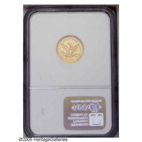 <B>1869-S<$2 1/2> AU58 NGC.</B></I> The '69-S, with a mintage of 29,500 pieces, is a scarce issue in all grades. The high-end AU example presented here displays bright yellow-gold surfaces that retain considerable luster. Typical softness is noted on some of Liberty's hair curls and the eagle's leg feathers. The surfaces are remarkably clean, yielding no mentionable marks. Census: 44 in 58, 15 finer (11/05).