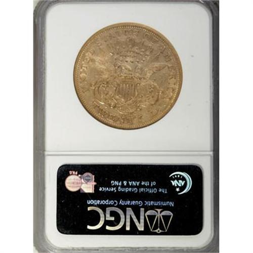<B>1869-S $20 AU53 NGC.</B></I> This issue is frequently seen in XF and lower condition, but in AU and finer grades it is scarce. The strike is generally good and there are many abrasions, but the ample luster and rich orange-gold color makes this an attractive coin.<BR><I>From The Wild West #1 NGC Registry of Type Three Double Eagles.</B></I><BR><BR><B>Coin Engraver:</B> James B. Longacre<BR><BR><b>Shipping:</b> Coins & Currency (<a target="_blank" href="http://www.heritageauctions.com/common/shipping.php">view shipping information</a>)