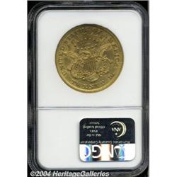 <B>1869-S<$20> AU55 NGC.</B></I> Nicely struck, save for minor weakness in portions of Liberty's hair. The surfaces are apricot-gold, and reveal a few light abrasions on the obverse. The reverse is generally well preserved with minimal abrasions. <BR><BR><B>Important notice:</B> Heritage usually auctions material at the rate of 200-250 lots per hour. On some occasions eBay Live bid software or the Internet may not be able to keep up with the pace of the auction. We recommend placing a realistic absentee bid now as insurance to avoid disappointment. Occasionally the auctioneer may eliminate or reject an eBay Live bid, and the auctioneer may also reopen a lot after the close of the eBay live bidding (usually because we missed an audience bid), and may reject your bid even if it shows you as the winning bidder. By bidding via eBay Live, you agree that Heritage may award the lot to another bidder at its sole discretion under the circumstances described above or any other reasonable circumstances. Since eBay bids are not shown to us until we open the lot on the floor, we treat those bids just like floor bids. In most cases the floor responds before the eBay bid is presented to us, due to Internet lag time, so for consistency we have made it a policy that floor bids are always considered first over tie eBay live bids. Also please note that all Heritage lots purchased through eBay Live carry a 20% Buyer's Premium. Please make sure you read the Terms and Conditions before you bid. </span></font></tr></table></td></tr></table>