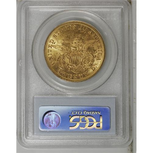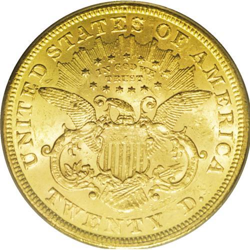 <B>1869-S $20 MS60 PCGS.</B></I> The substantial mint luster has a mildly frosty quality and the coloration is a lighter straw-gold shade with some hints of green. Generally well struck throughout, except for noticeable flatness on most of the obverse stars. The surfaces are moderately abraded, which defines the grade of the piece. Population: 10 in 60, 28 finer (10/06).<BR><BR><b>Shipping:</b> Coin/Currency (<a target="_blank" href="http://www.heritageauctions.com/common/shipping.php">view shipping information</a>)
