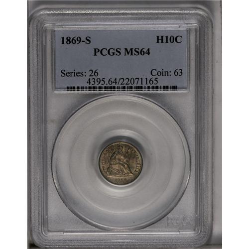 <B>1869-S<H10C> MS64 PCGS.</B></I> Variegated golden color lies atop the surfaces and the Gem level is precluded by noticeable softness at the top of the wreath on the reverse. Only three coins have been graded finer by PCGS (6/06).