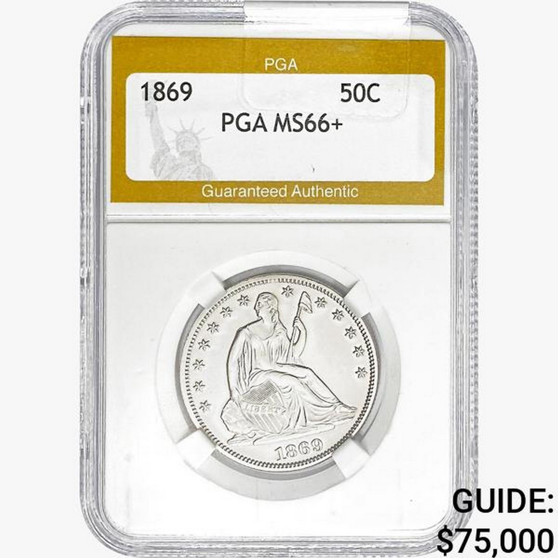 1869 Seated Liberty Half Dollar PGA MS66+
