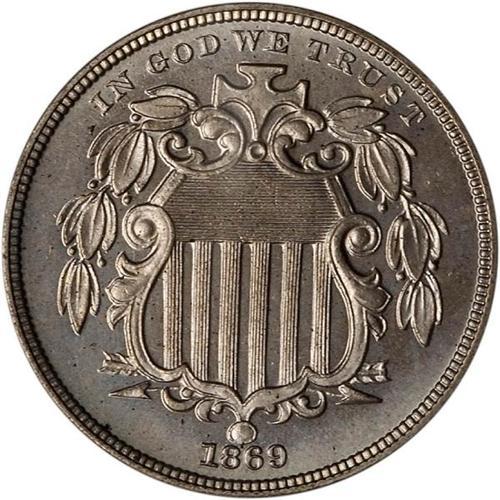 <b>1869 Shield Nickel. PCGS graded Proof 65.</b> A lustrous Gem Proof that has exquisite surfaces and a very good eye-appeal. Meticulous strike on every device, including the shield lines, both horizontal and vertical. Similar to 1868, Proof mintage was 600 pieces <b>(PCGS # 3823)</b> <i>