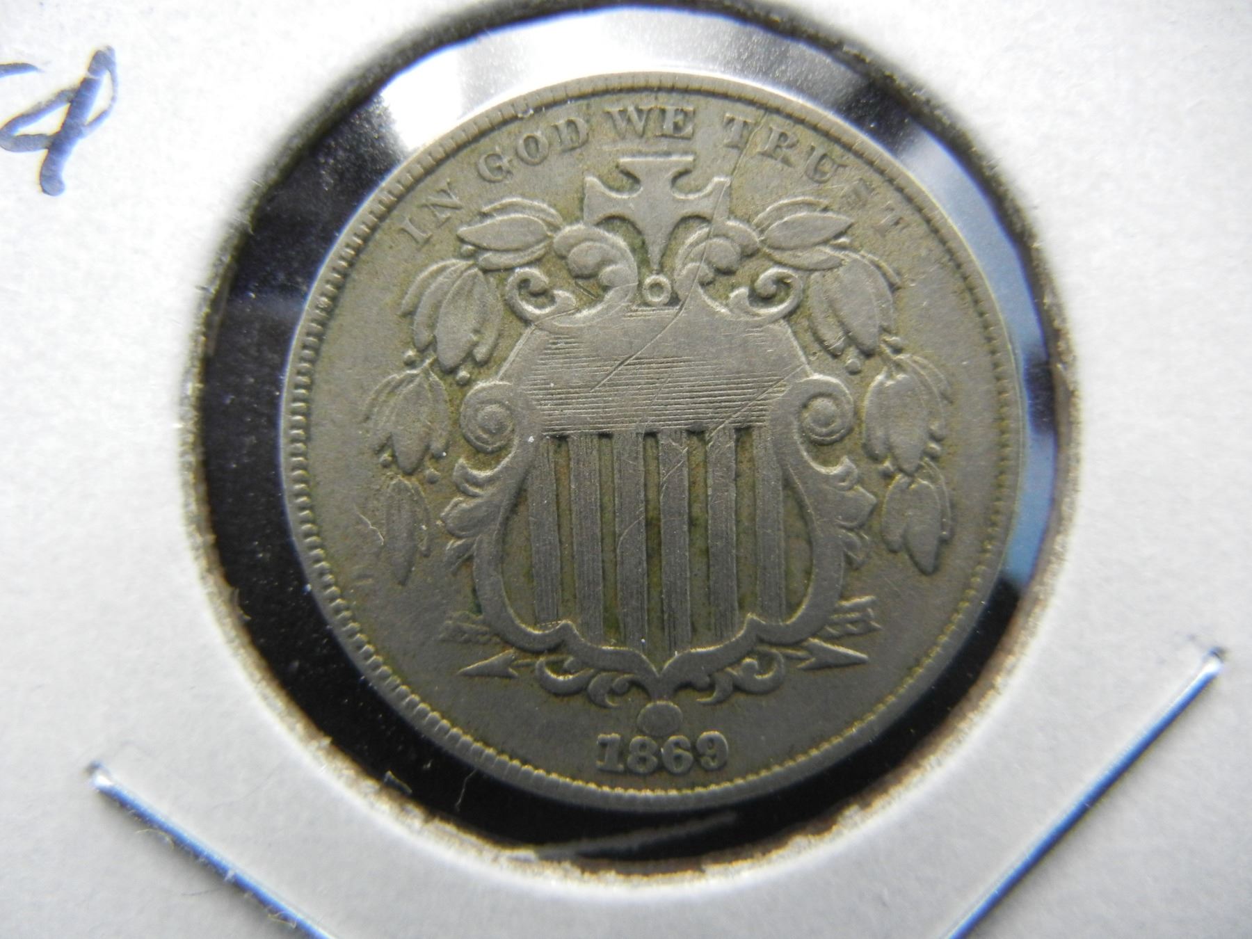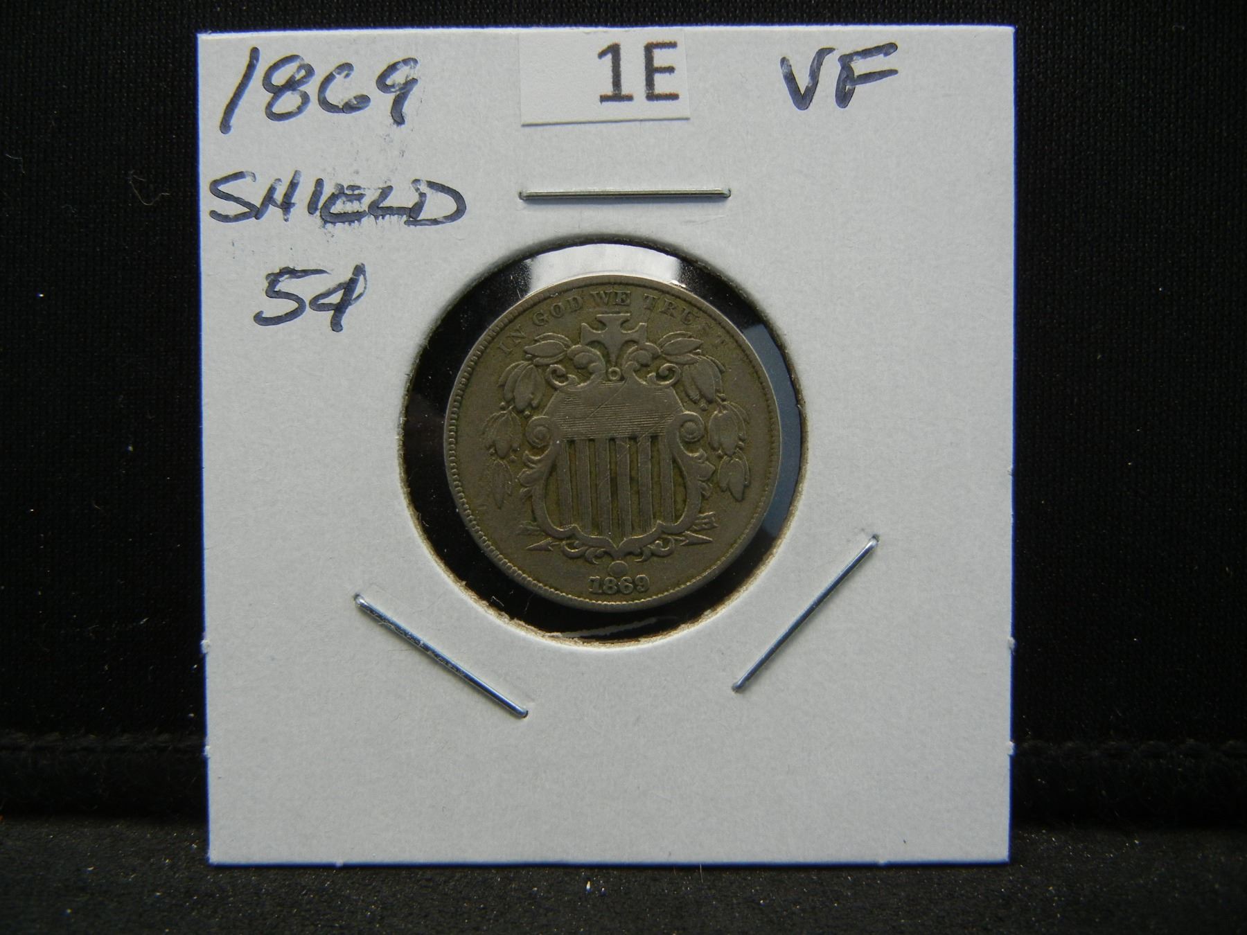 1869 Shield 5c. VF.