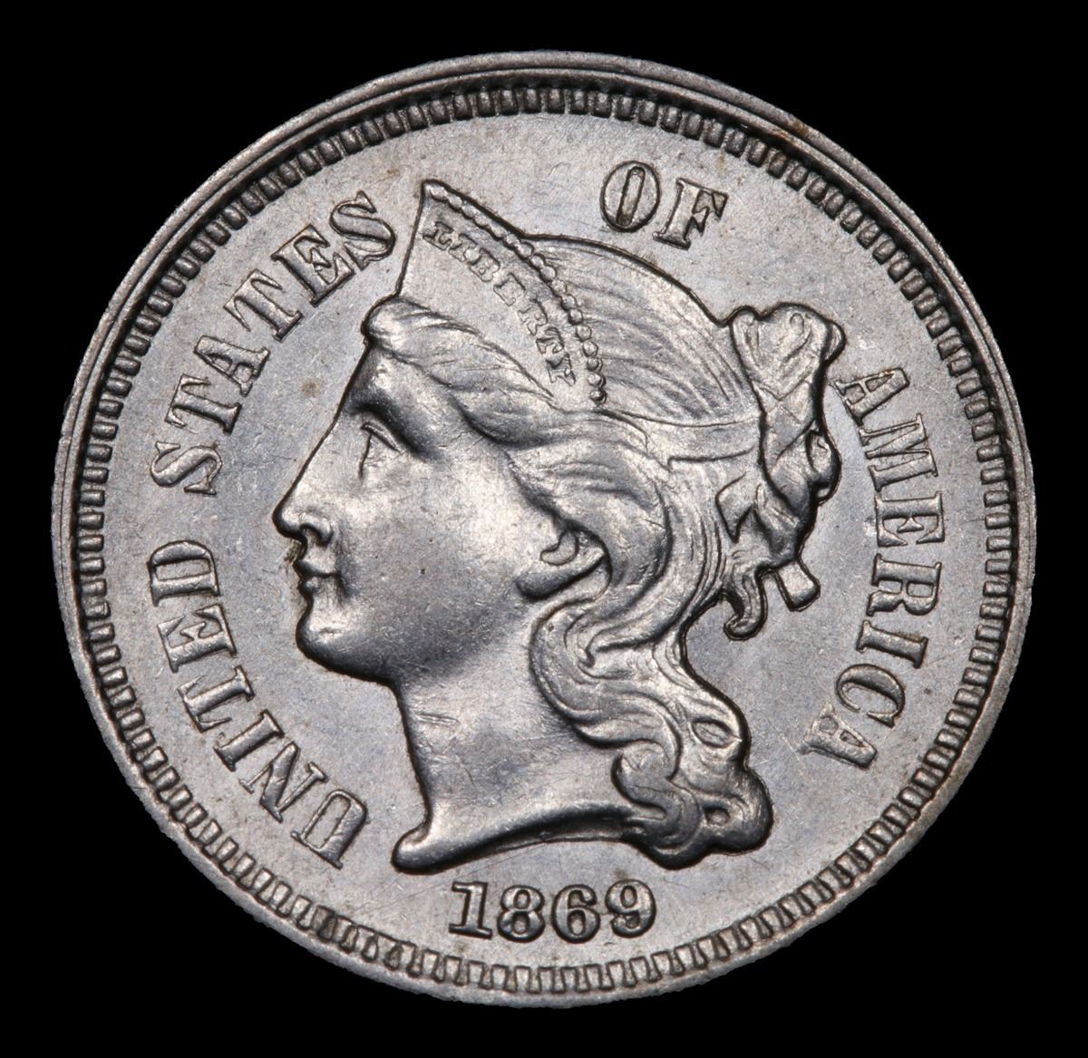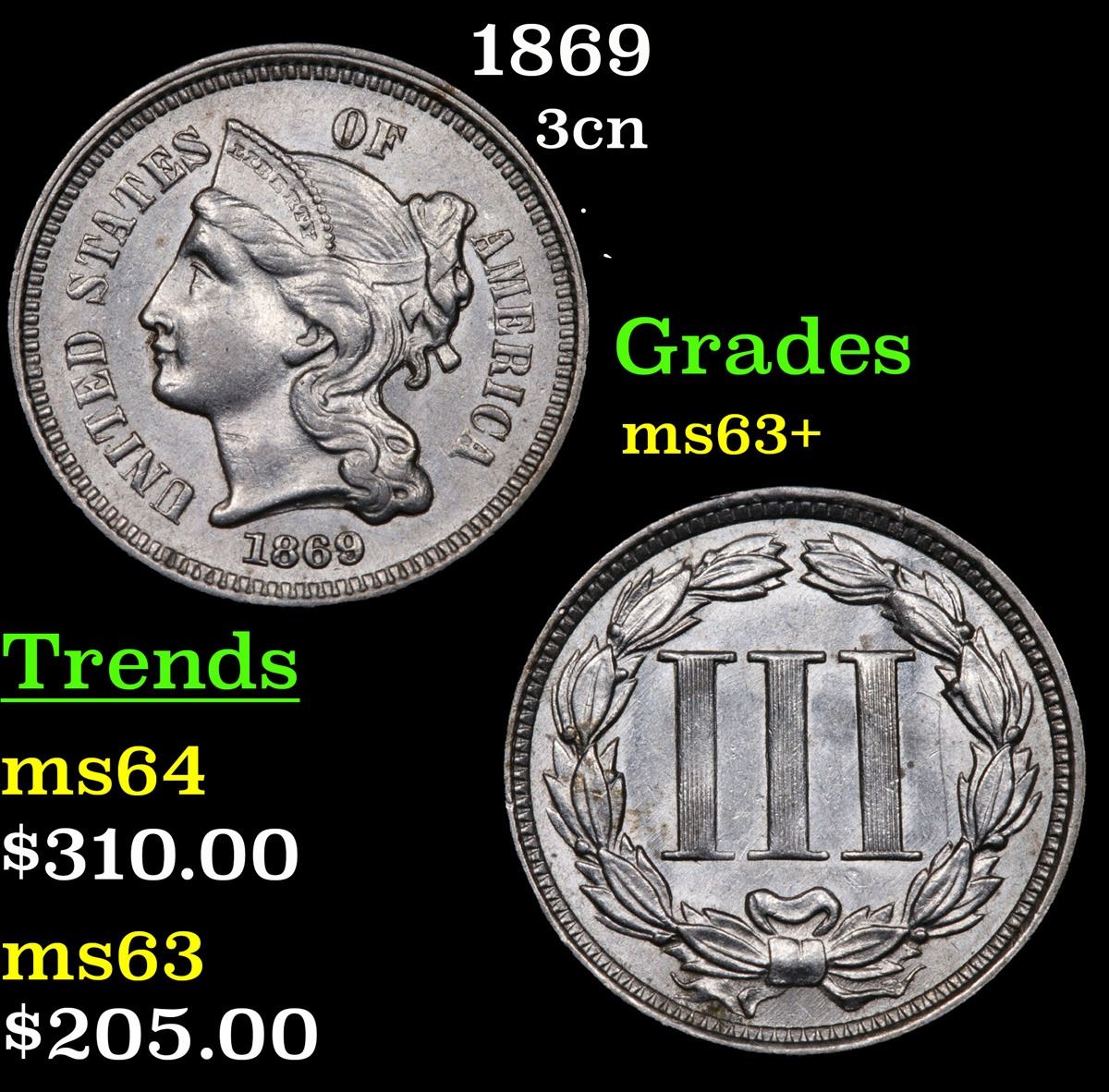 1869 Three Cent Copper Nickel 3cn Grades Select+ Unc.
