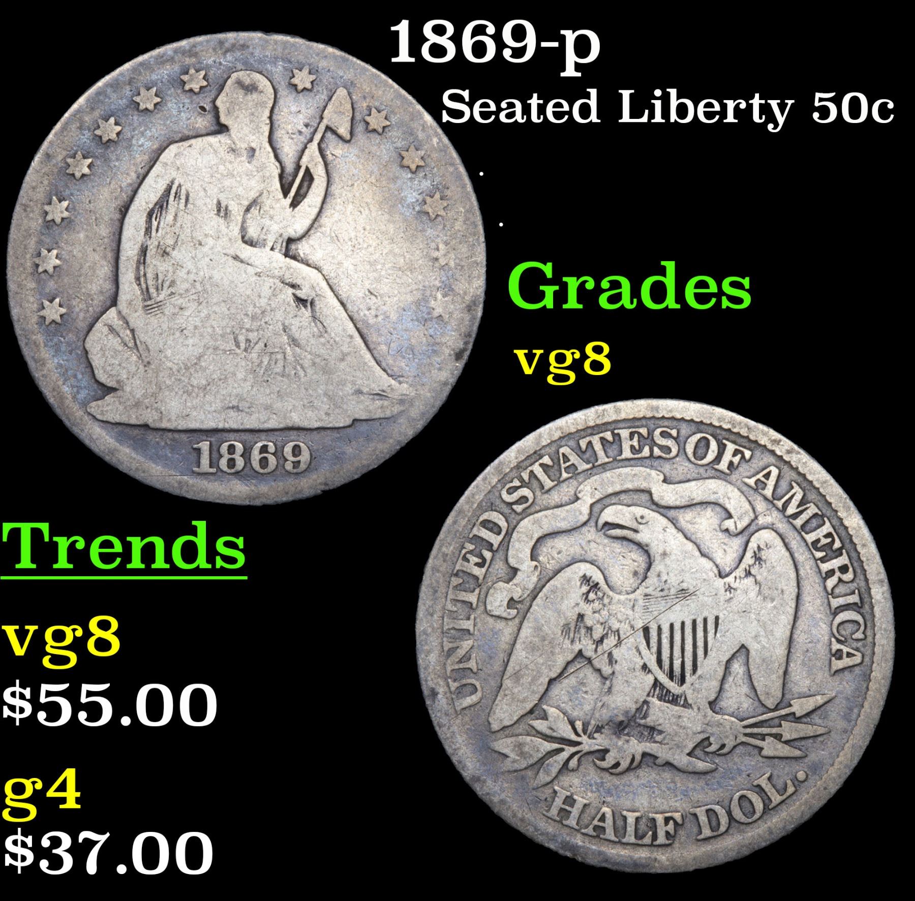 1869-p Seated Half Dollar 50c Grades vg, very good.