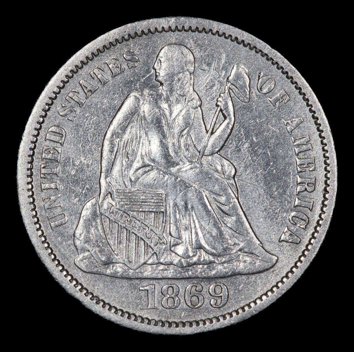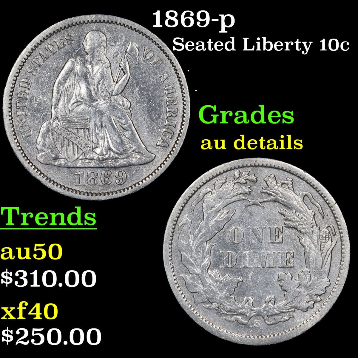 1869-p . . Seated Liberty Dime 10c Grades AU Details.