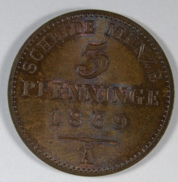 1869A 3 PFENNINGE, 120 EINEN THALER, PRUSSIA GEM UNC