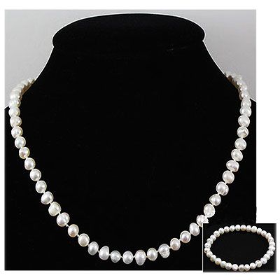 187.00 ctw Fresh Water Rice Pearl Necklace & Bracelet **|**|** Natural Fresh Water Pearl Set of Necklace 17.5" and Elestic Bracelet 6" with silver lock. ; MSRP: $300