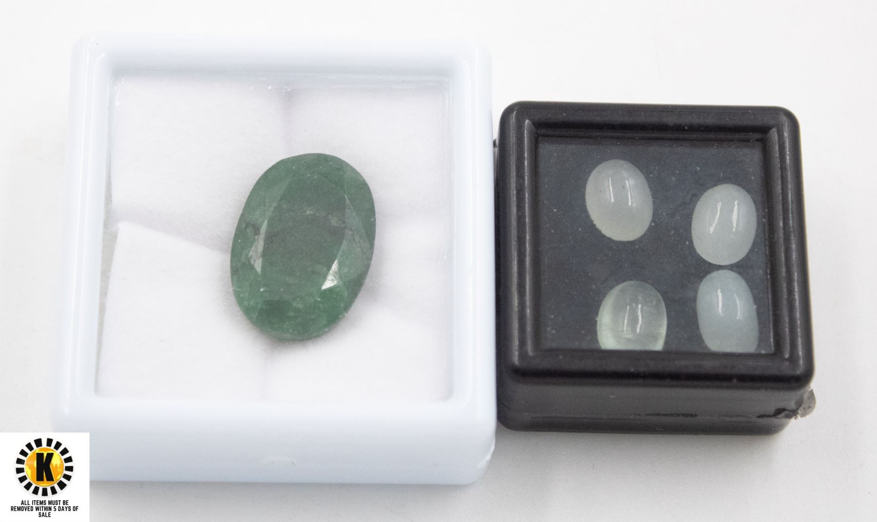 #187-UNHEATED AQUARMARINE 6.80CT, EMERALD 15.85CT