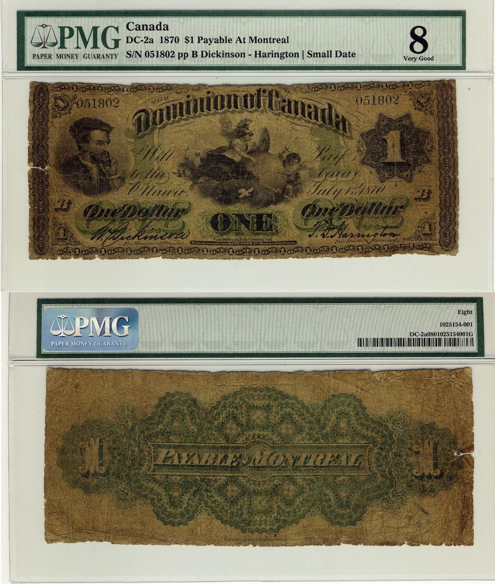 1870 $1 DC-2a #051802 PMG VG8