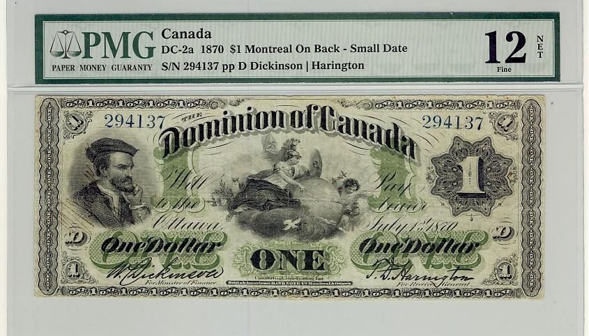 1870 $1 DC-2a #294137, PMG F12 Net Rust