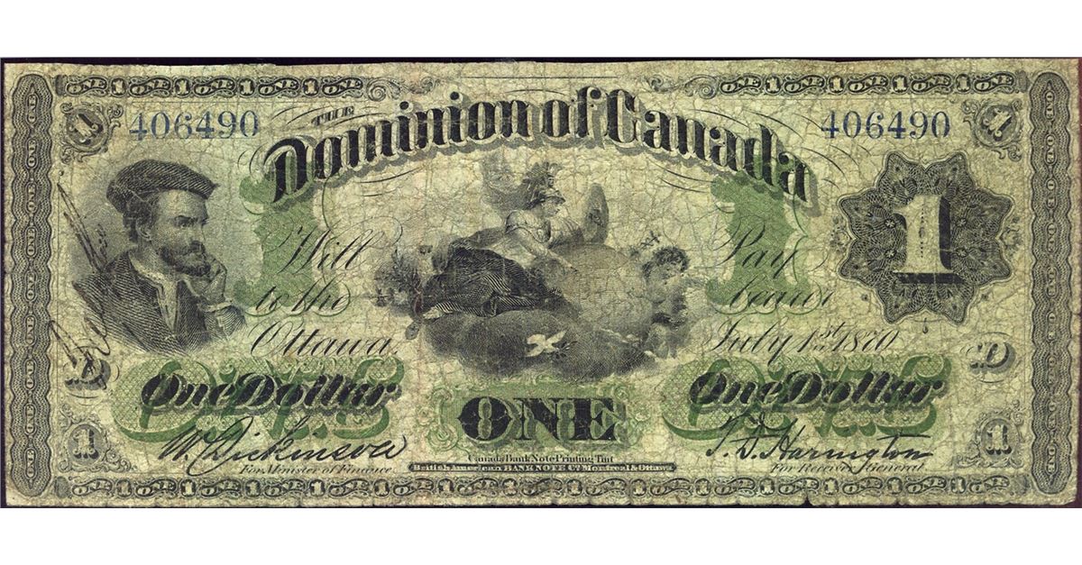 1870 $1 DC-2a #406490, PMG VG10.