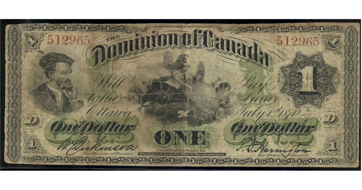 1870 $1 DC-2b-i #512965. A nice VG10 issue.