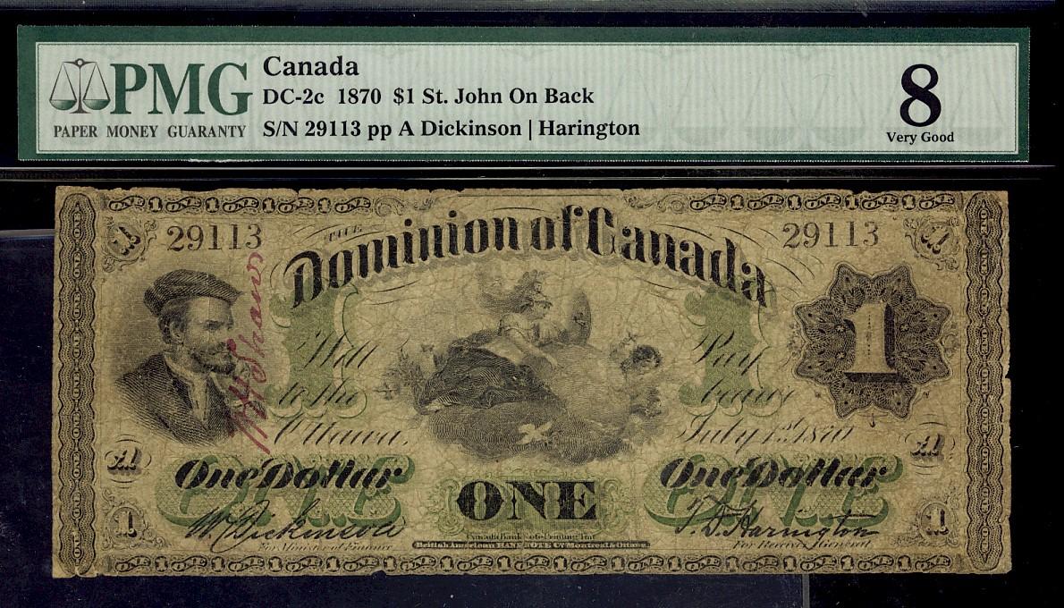 1870 $1 DC-2c #29113 Payable at St. John PMG VG8. Rare and underrated! 10 examples known.