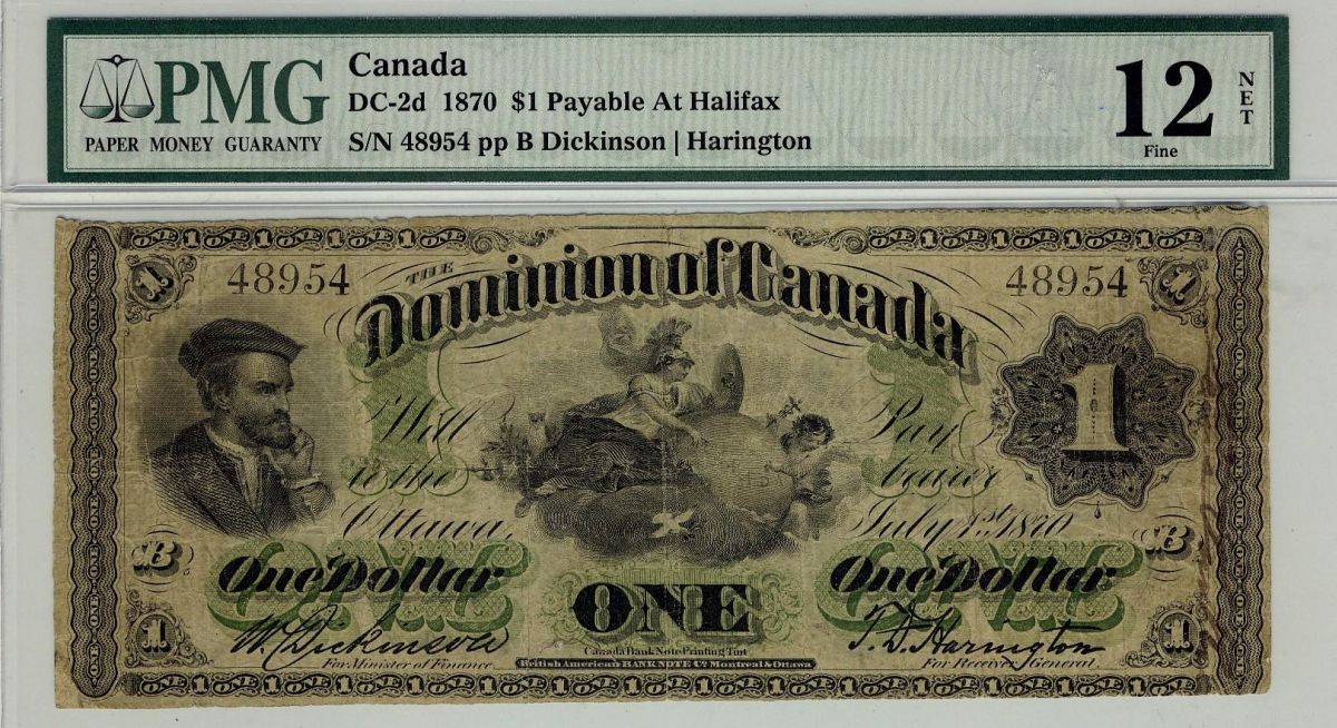 1870 $1 DC-2d #48954, PMG F12 NET Corner Re-Attached. Rare.