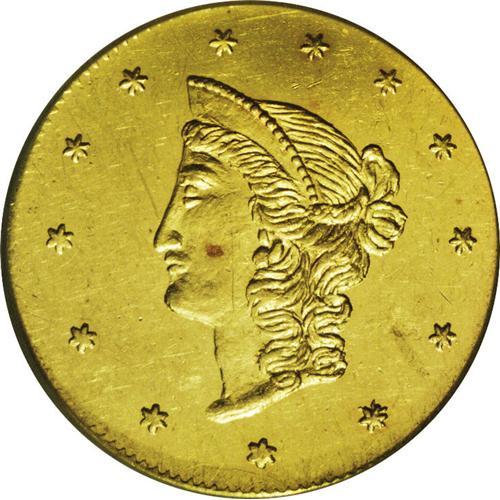 <B>1870<$1> Goofy Head Round 1 Dollar, BG-1205, High R.4, MS61 PCGS.</B></I> The popular Goofy Head design, which provides a change of pace from the usually encountered Indian and Liberty motifs. The star at 5 o'clock is repunched and a copper toning spot is on the obverse portrait's cheek. A lustrous and well struck example that has mirrored fields and moderate handling marks. Population: 8 in 61, 5 finer (4/06).