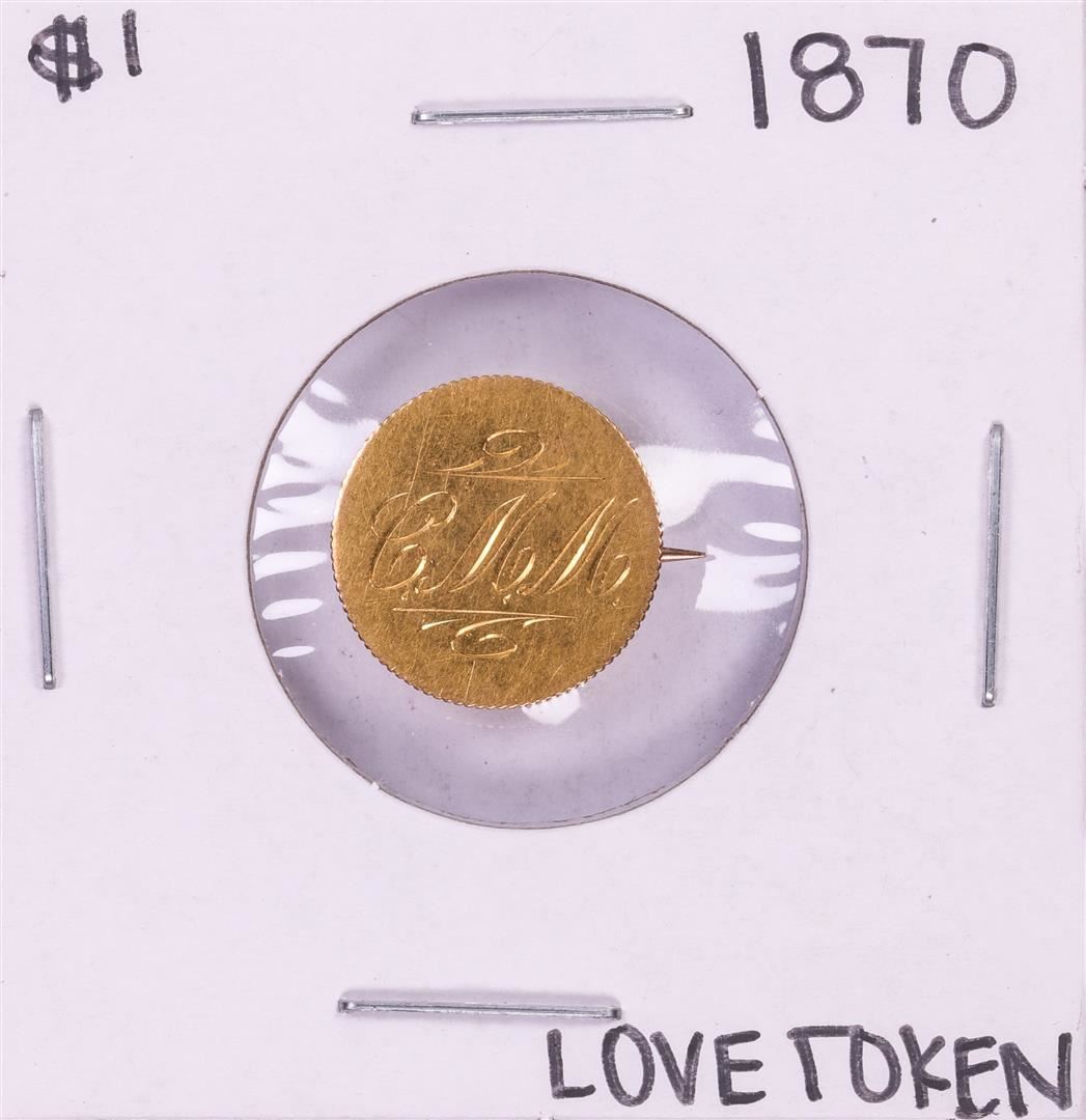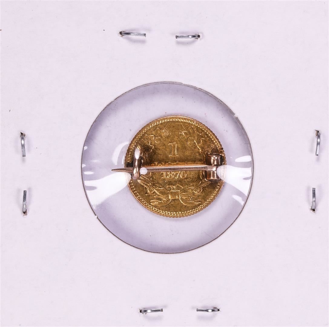 One 1870 $1 Indian Princess Head Gold Dollar Love Token Coin Pin.
