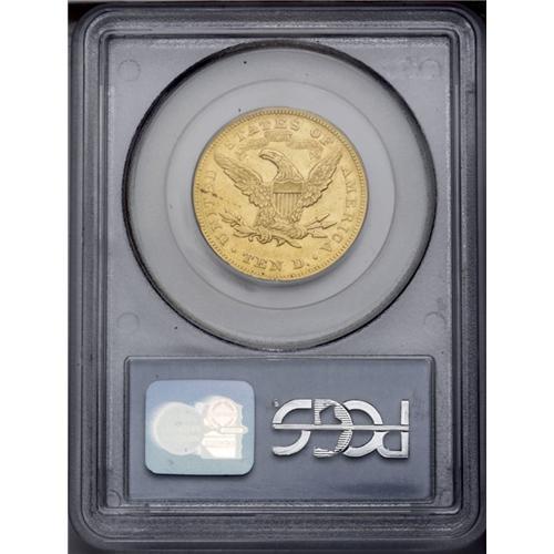 <B>1870<$10> AU50 PCGS.</B></I> Remnants of luster percolate from protected areas of this bold and glossy rare date eagle. Small marks are somewhat more frequent on the obverse. From a tiny mintage of 3,990 pieces. Population: 12 in 50, 12 finer (3/06).<BR><I>From The Steve Glenn Collection.</B></I> <BR><BR><B>Important notice:</B> Heritage usually auctions material at the rate of 200-250 lots per hour. On some occasions eBay Live bid software or the Internet may not be able to keep up with the pace of the auction. We recommend placing a realistic absentee bid now as insurance to avoid disappointment. Occasionally the auctioneer may eliminate or reject an eBay Live bid, and the auctioneer may also reopen a lot after the close of the eBay live bidding (usually because we missed an audience bid), and may reject your bid even if it shows you as the winning bidder. By bidding via eBay Live, you agree that Heritage may award the lot to another bidder at its sole discretion under the circumstances described above or any other reasonable circumstances. Since eBay bids are not shown to us until we open the lot on the floor, we treat those bids just like floor bids. In most cases the floor responds before the eBay bid is presented to us, due to Internet lag time, so for consistency we have made it a policy that floor bids are always considered first over tie eBay live bids. Also please note that all Heritage lots purchased through eBay Live carry a 20% Buyer's Premium. Please make sure you read the Terms and Conditions before you bid. This lot is being auctioned in conjunction with a live floor auction by Heritage Galleries & Auctioneers. All final auction and invoice information will be supplied by Heritage Galleries & Auctioneers, and all other information should be considered preliminary. Lot:3970 <BR><BR><B>Winning Notification and Billing:</B> After the FINAL session in this auction is complete, Heritage will send e-mail and snail mail invoices. This process normally takes several days. All final auction and invoice information will be supplied by Heritage Galleries & Auctioneers, and all other information should be considered preliminary. <BR><BR>This auction will be conducted on a live auction floor and over the Internet through eBay Live. If you choose to place an absentee bid, please take a moment to <font color='#0000ff'><u><a href='http://pages.ebay.com/liveauctions/help/before/laabsentee.html'>learn how eBay Live absentee bidding works</a></u></font><font color='#000000'>