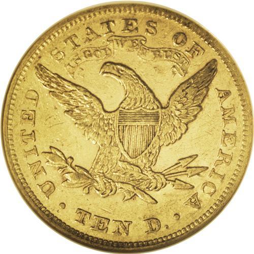 <B>1870 $10 AU53 NGC.</B></I> A rare date in all grades. Only 3,990 pieces were struck, and none were set aside by contemporary collectors. The single finest NGC-certified is an MS60, while PCGS has yet to encapsulate any as Mint State. This luminous and moderately abraded yellow-gold representative is evenly struck, and has its share of flashy luster. Census: 8 in 53, 19 finer (11/06).<BR><BR><b>Shipping:</b> Coin/Currency (<a target="_blank" href="http://www.heritageauctions.com/common/shipping.php">view shipping information</a>)
