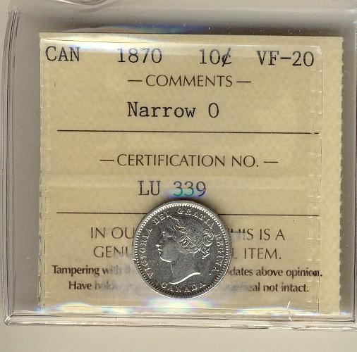 1870 10¢ Narrow ICCS VF20