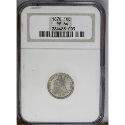 1870 10C PR64 NGC. Dusky golden-brown and aqua-blue to 1870[10C] PR64 NGC.